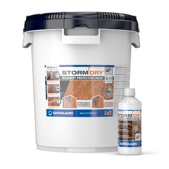 Stormdry Masonry Waterproofing Cream is a deeply penetrating water-repellent silicone sealer designed for the protection of exterior masonry. This thick, white cream is ready to use and can be applied by brush, roller or airless spray. It penetrates deeply into brickwork, masonry, mortar and concrete, curing to a colourless, natural finish that lasts over 25 years. Stormdry Cream serves as an effective brick sealer and masonry sealer, providing excellent brick waterproofing and enhancing the energy efficiency of your home by reducing heat loss through walls.