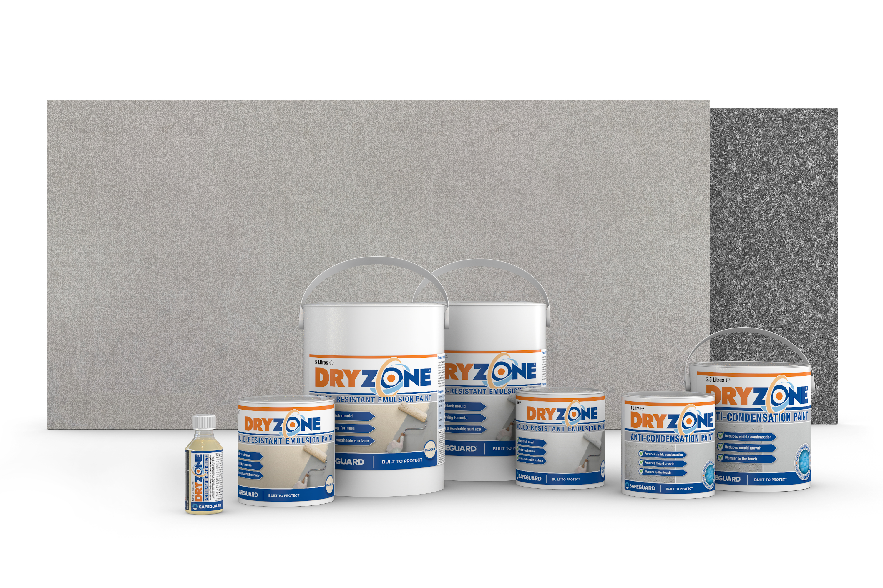 The kit comprises a dual-action system utilising an initial application of Dryzone Mould Eliminator to remove existing surface mould and periodic application of Dryzone 100 Mould Sanitiser to kill the remaining embedded hyphae, controlling and minimising regrowth for long-term protection.
